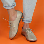 bolichero en cuero color platino - oro x cordón en cuero y forrado en cuero, suela en caucho